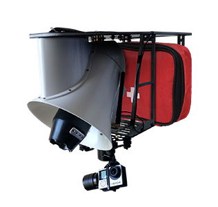 四合一掛載:喊話器、高清相機、照明設備、急救包設備 |