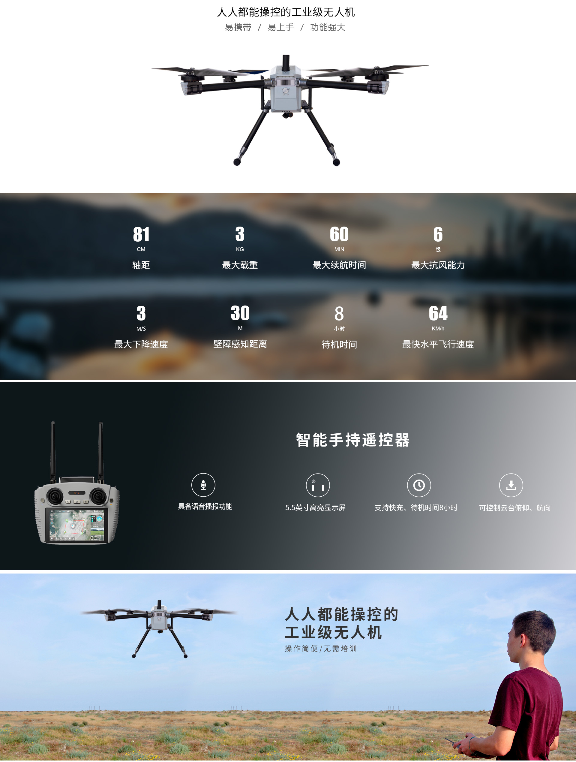 遙控器具備語音播報(bào)功能、禁飛設(shè)置、地圖圍欄設(shè)置、低電設(shè)置等功能